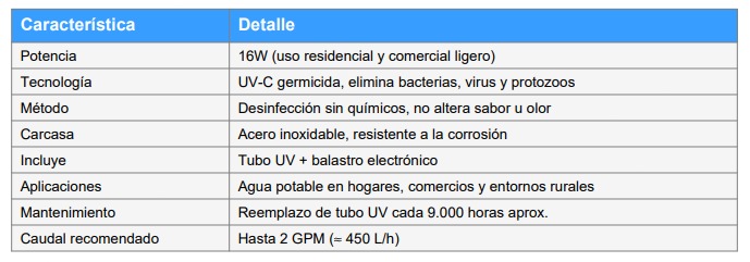- Filtración, pulimento y desinfección en un solo módulo.